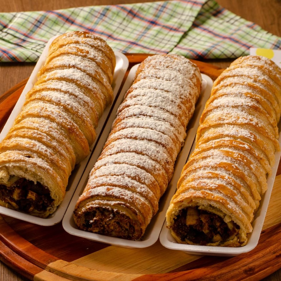 Nosso Strudel de Maçã com passas.