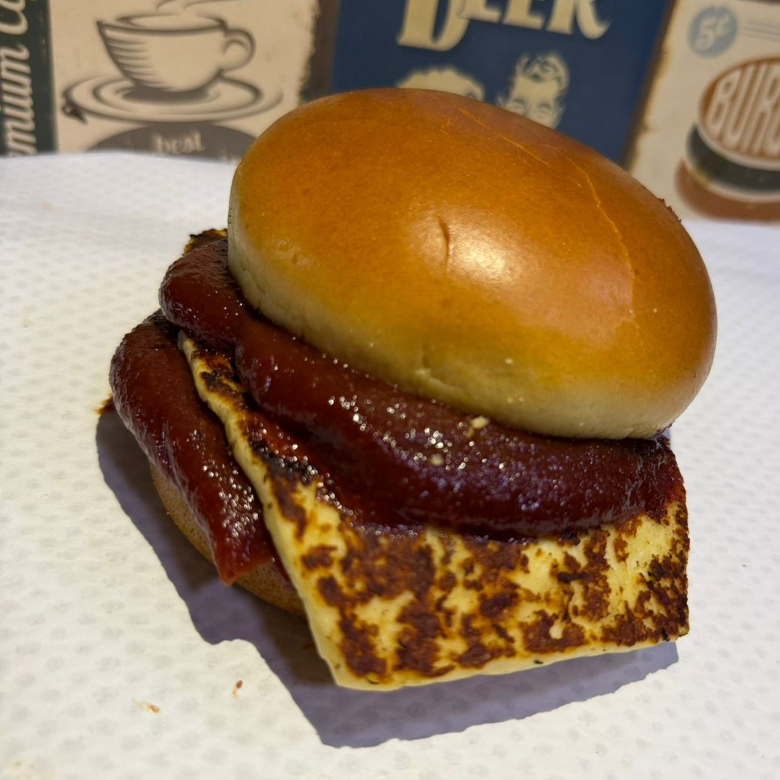 Pão australiano, hambúrguer, cheddar, bacon e molho barbecue.