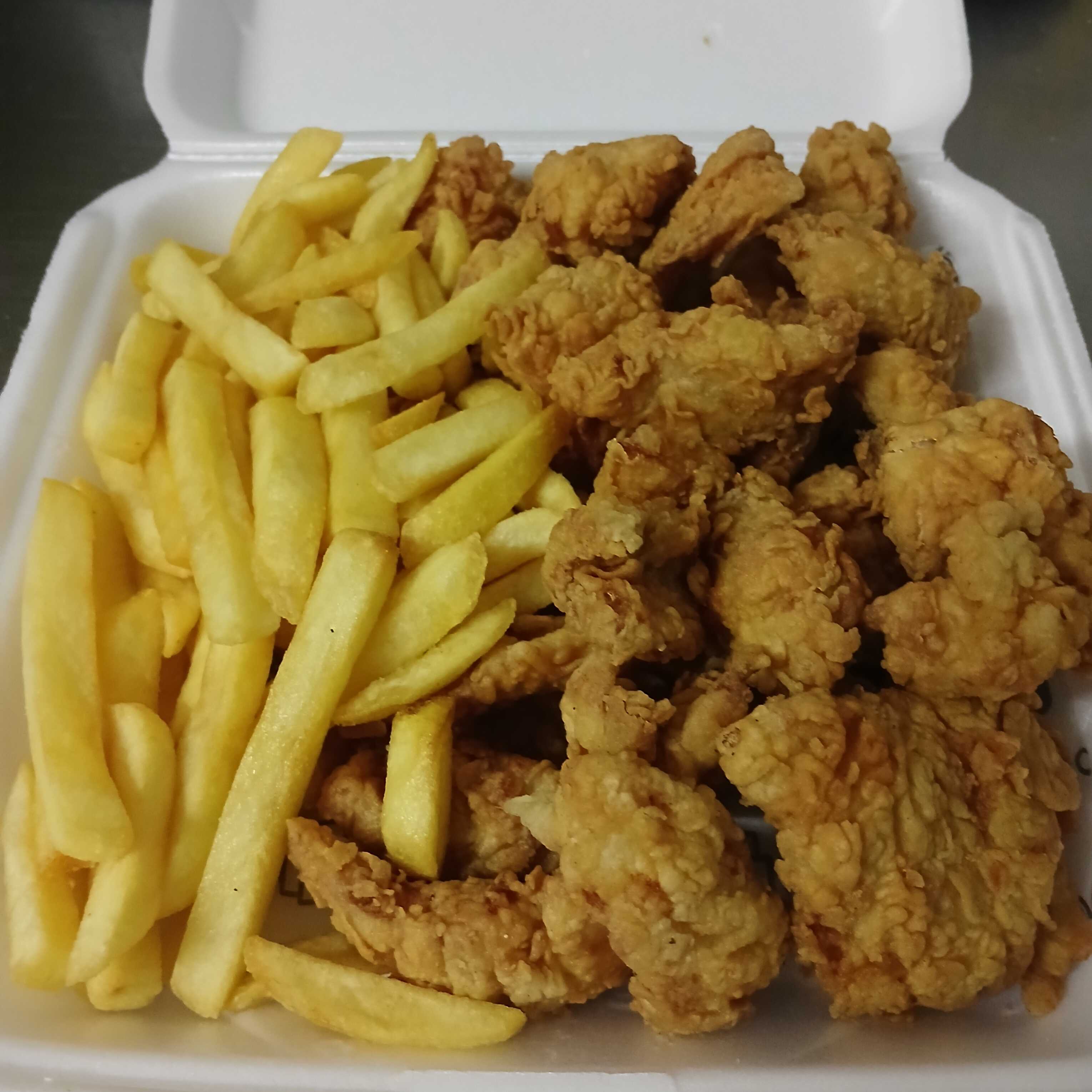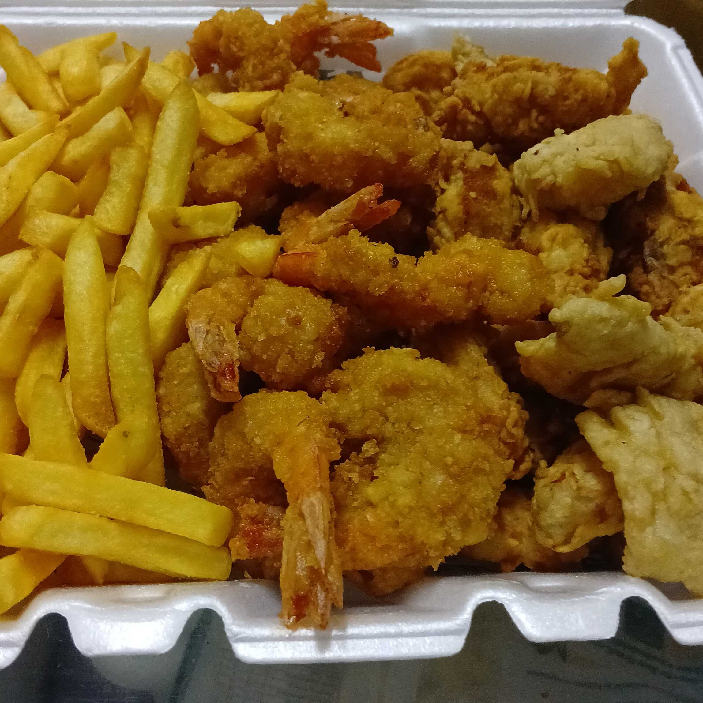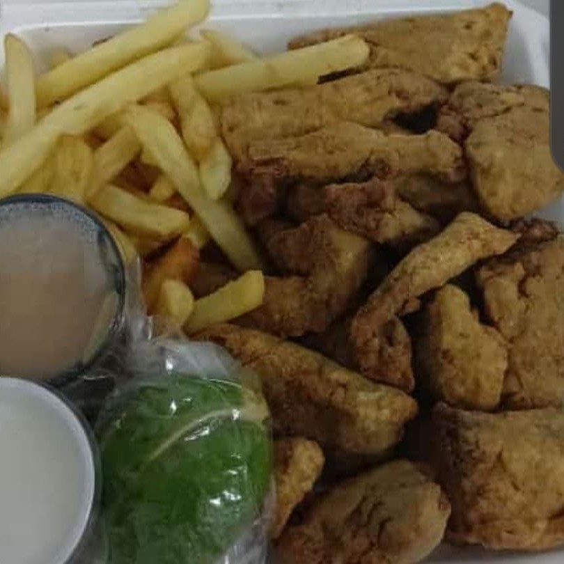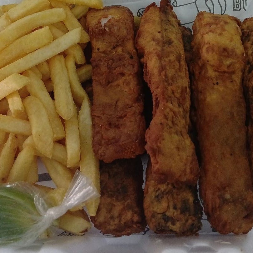 300g de isca de merluza 200g batata acompanha 2 molhos