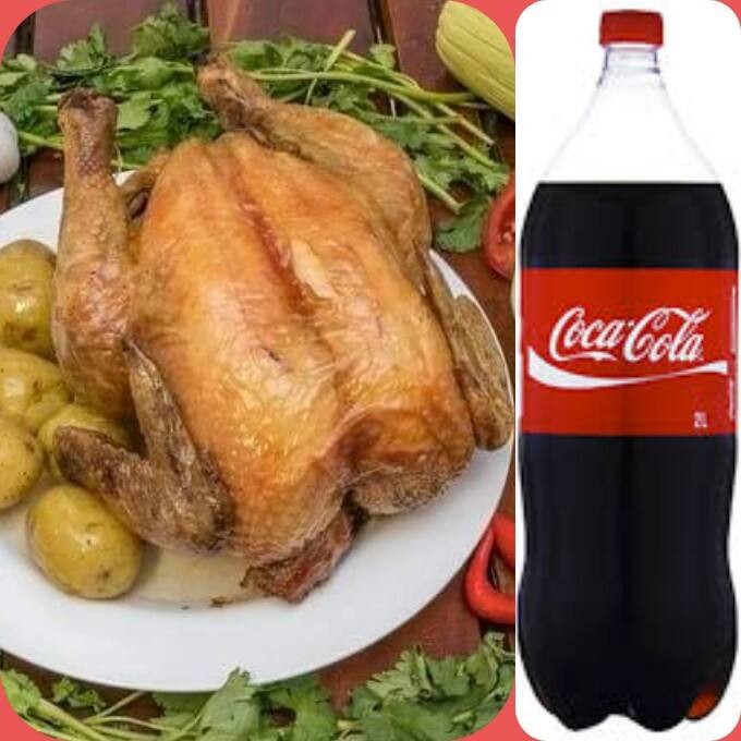 1 delicioso frango assado , quentinho e crocante 1 Coca-Cola 2l gelada