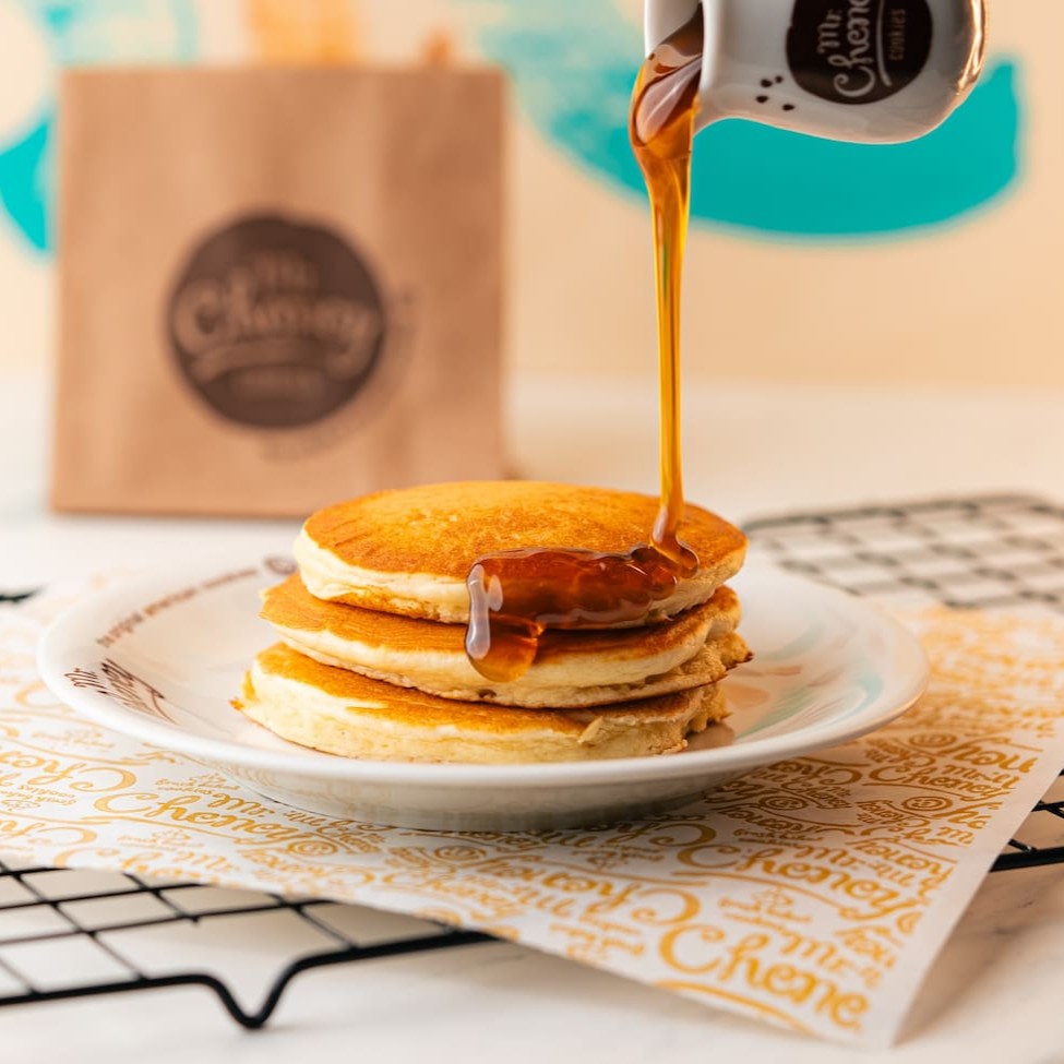 2 panquecas com delicioso acompanhamento a sua escolha