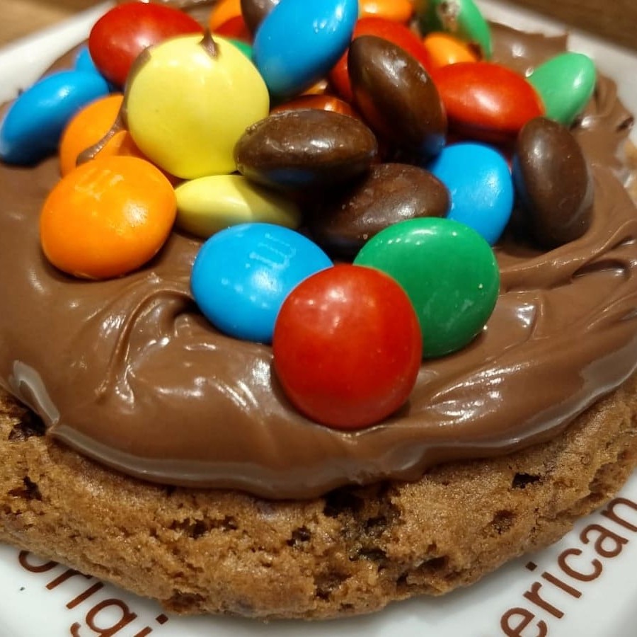 Apresentamos o espetacular Cookie Double Nutella M&M's,Com uma massa de chocolate rica e irresistível, repleta de pedaços de chocolate meio amargo, esse cookie é um verdadeiro deleite para os amantes de chocolate. Cobrimos generosamente cada cookie com a Original Nutella e para deixar tudo ainda mais especial, ele é cravejado com os inconfundíveis e originais M&M's, que adicionam uma explosão de cores e texturas.