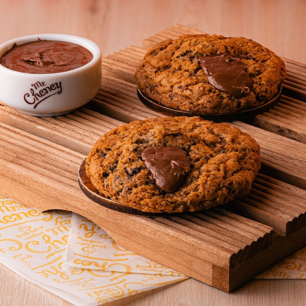 Um é bom, dois é ótimo, três é incrível. Cookie com massa de chocolate recheado de pedaços de chocolate meio amargo e chocolate branco. Afinal, chocolate nunca é demais.