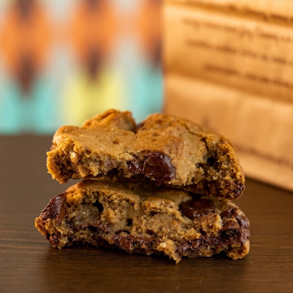Uma cookie feita especialmente pra você, chocólatra. Macio, com puro cacau na massa e grandes pedaços de chocolate meio amargo. É um sonho em forma de chocolate.