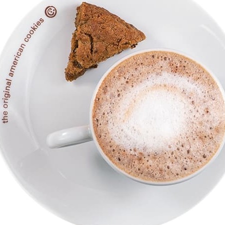Cookie com uma massa de baunilha? Tem. Cookie com grandes pedaços de chocolate branco dentro? Tem também. E cookie que junta essas duas coisas? É claro que tem. É só pedir.