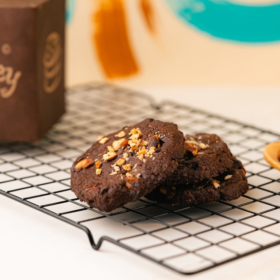 Se você abrir a câmera frontal do seu celular, vai ver que seus olhos estão brilhando e sua boca está cheia de água. Escute os sinais e peça esse cookie feito com cacau na massa, grandes pedaços de nozes chilenas e chocolate meio amargo.