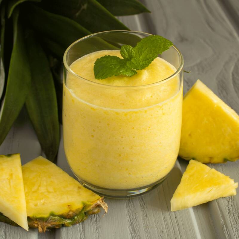 Combinação refrescante de abacaxi, hortelã e dois tipos de iogurte, batidos com leite desnatado. Cremoso, leve e cheio de sabor!