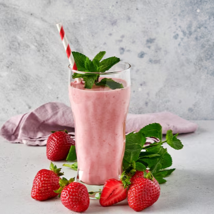 Morango fresquinho batido com dois tipos de iogurte, hortelã e leite desnatado. Cremoso, leve e cheio de sabor!