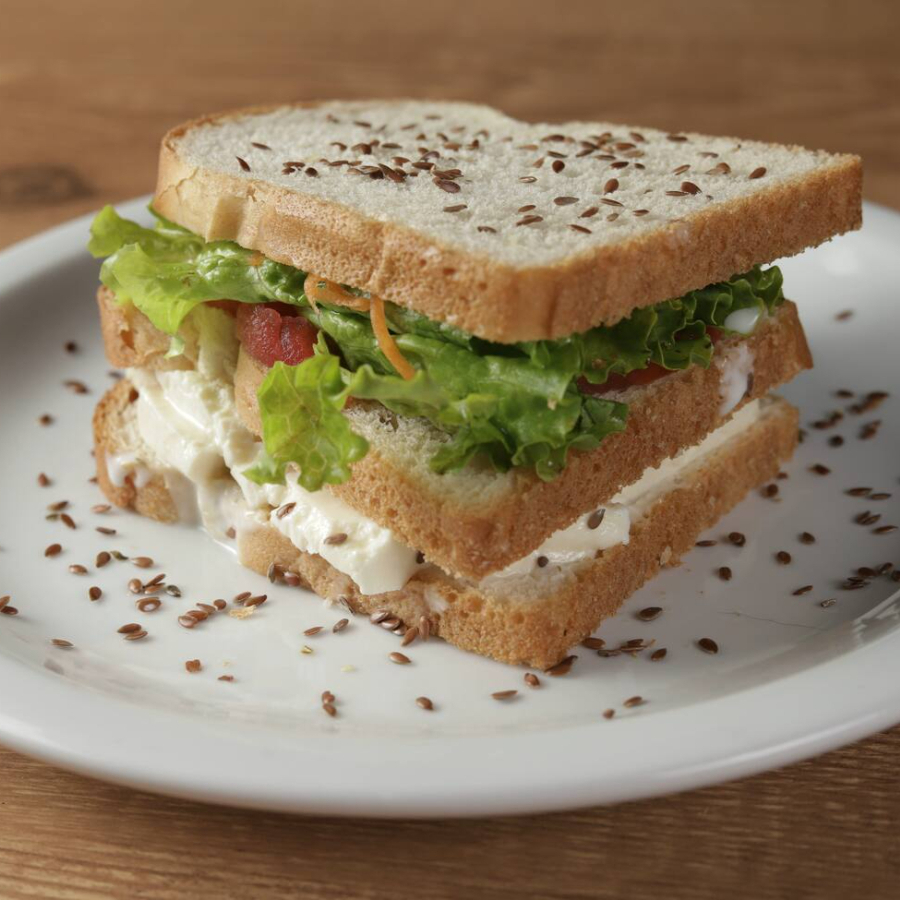 Delicie-se com nosso irresistível 'Lanche Natural de Queijo Minas'. Cuidadosamente preparado, este lanche é composto por três suaves e nutritivas fatias de pão integral, generosamente recheadas com cubos de autêntico queijo minas frescal, um toque cremoso de cream cheese e uma variedade de vegetais frescos e crocantes, incluindo alface, tomate e cenoura ralada. Uma opção de lanche natural incrivelmente saborosa e saudável, perfeita para qualquer hora do Dia!