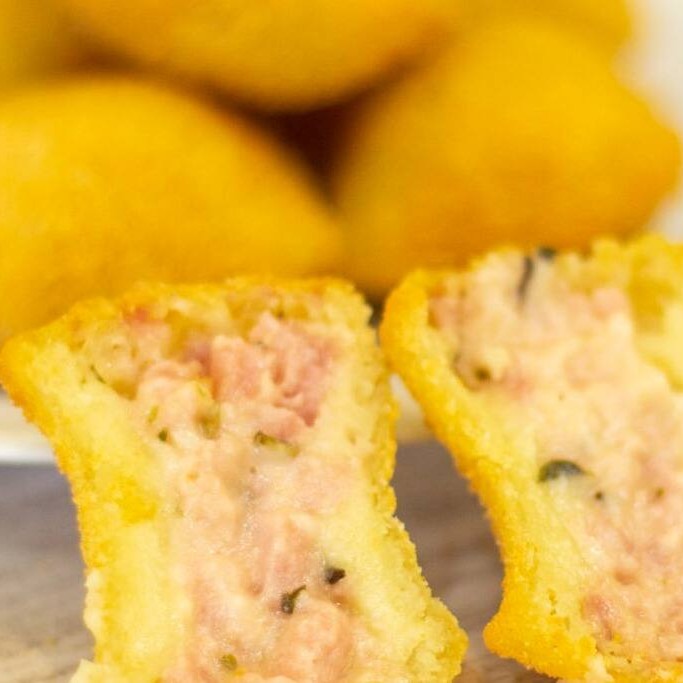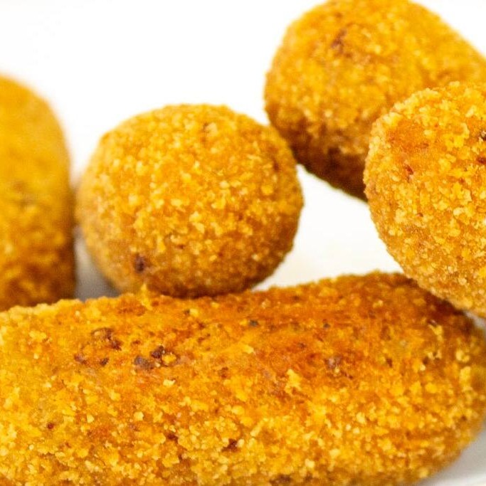 O bolinho de calabresa de 18g é uma explosão de tempero e textura, perfeito para qualquer momento.