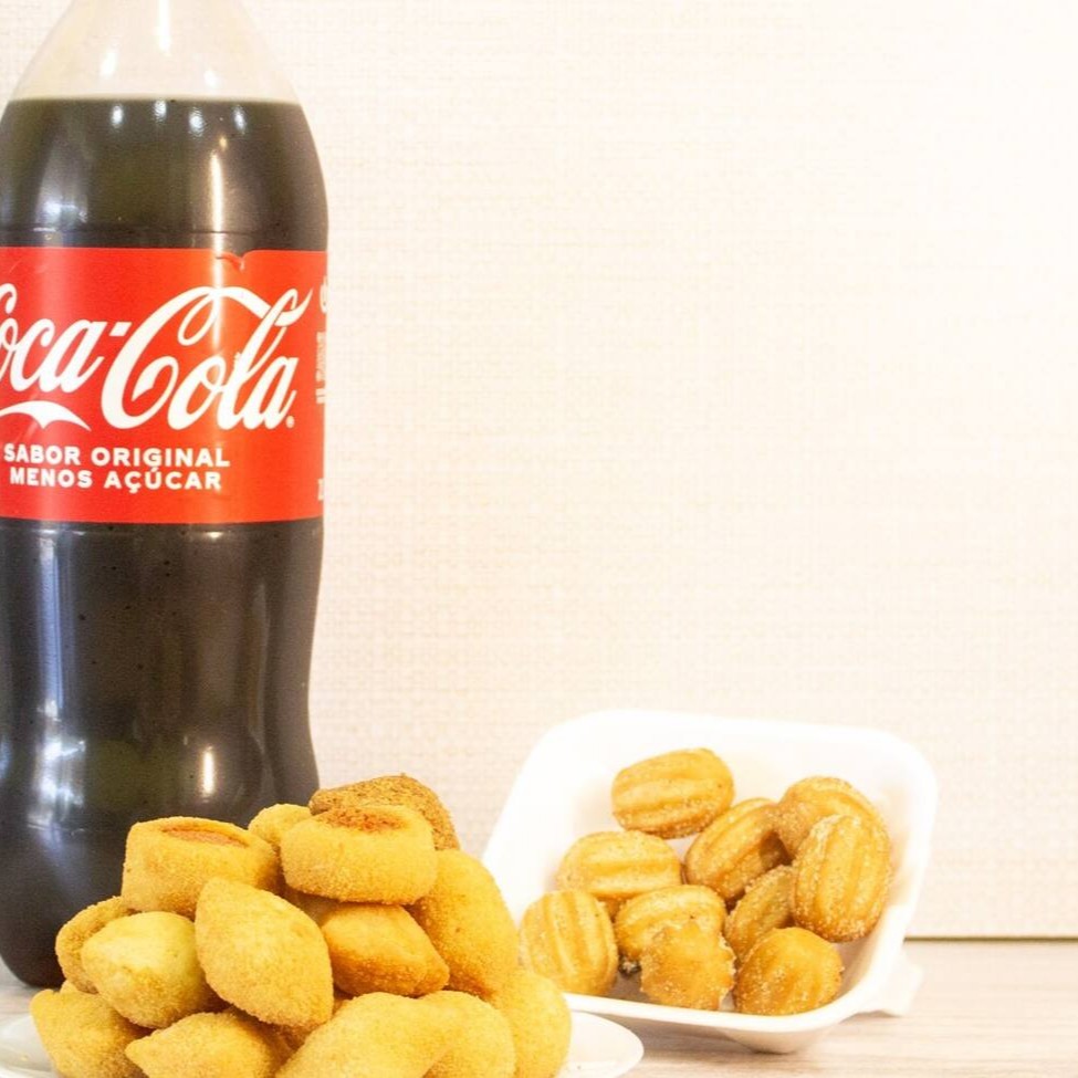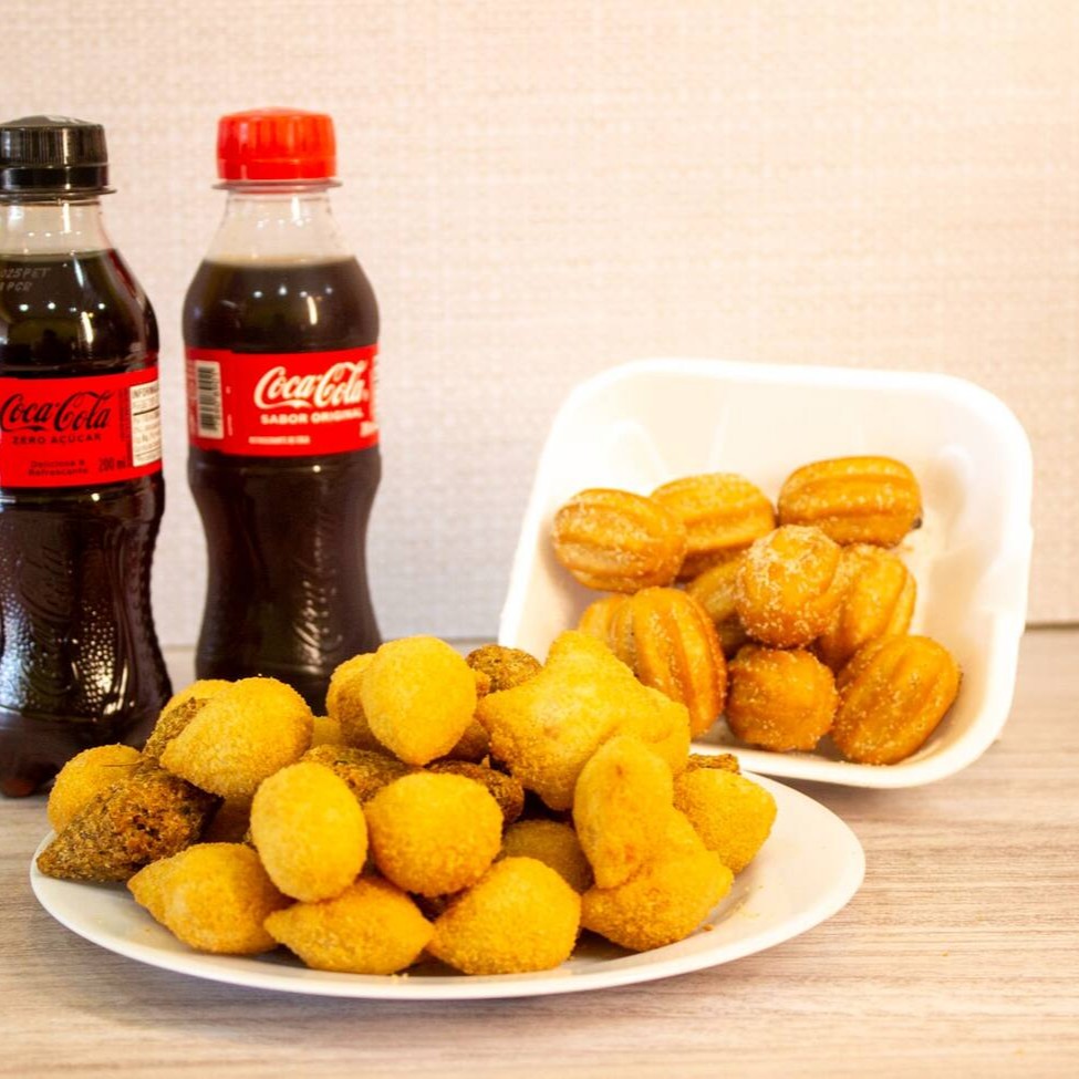 50 mini salgados 8gramas. 1 Coca-Cola 200ml. **A imagem não representa a quantidade**