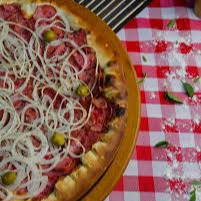 MOLHO DE TOMATE , CALABRESA MOÍDA, CEBOLA E MUSSARELA.