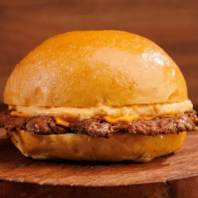 Pão brioche, carne 100g, queijo cheddar e molho da casa