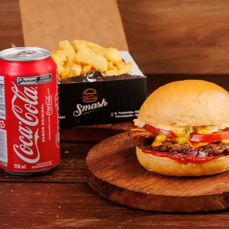 Pão brioche, carne 100g, molho da casa , bacon, queijo cheddar, alface, tomate, cebola ketchup e mostarda.