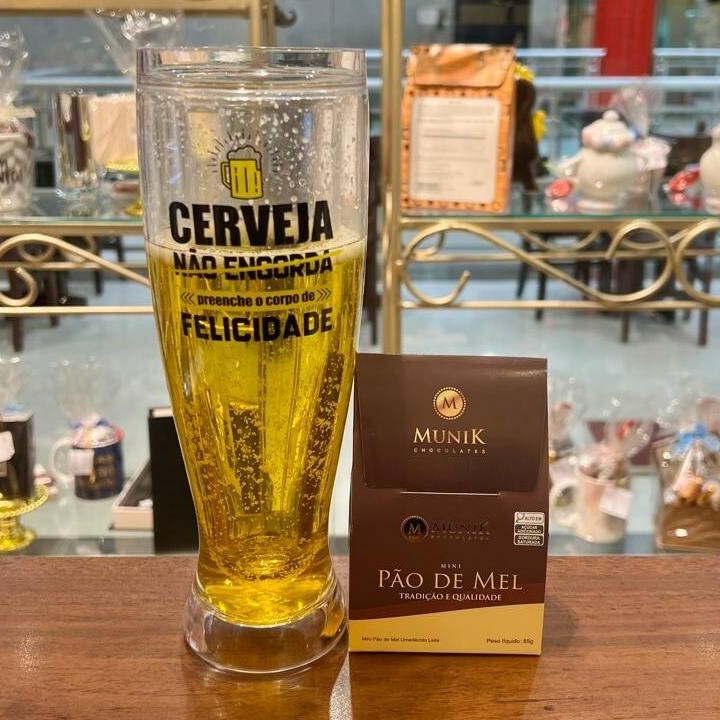 Kit de copo tulipa congelável, mantem a bebida gelada por mais tempo colocando ela no freezer + 1 caixa de pão de mel mini 85g.