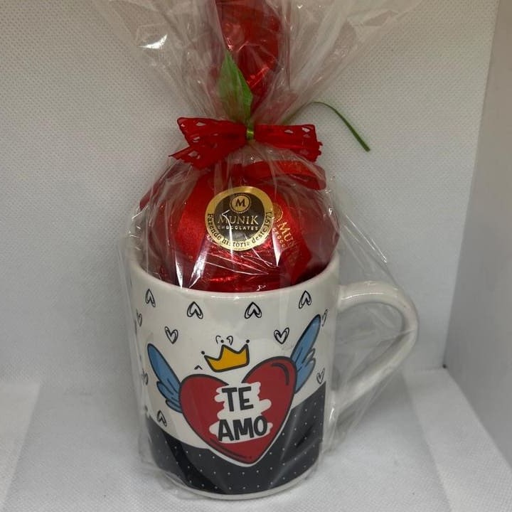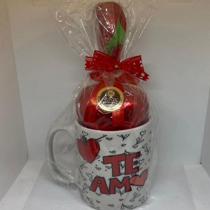 Caneca em porcelana escrito Te amo - para sempre com você - contém : 1 tulipa de chocolate ao leite e 1 coração de chocolate ao leite.
