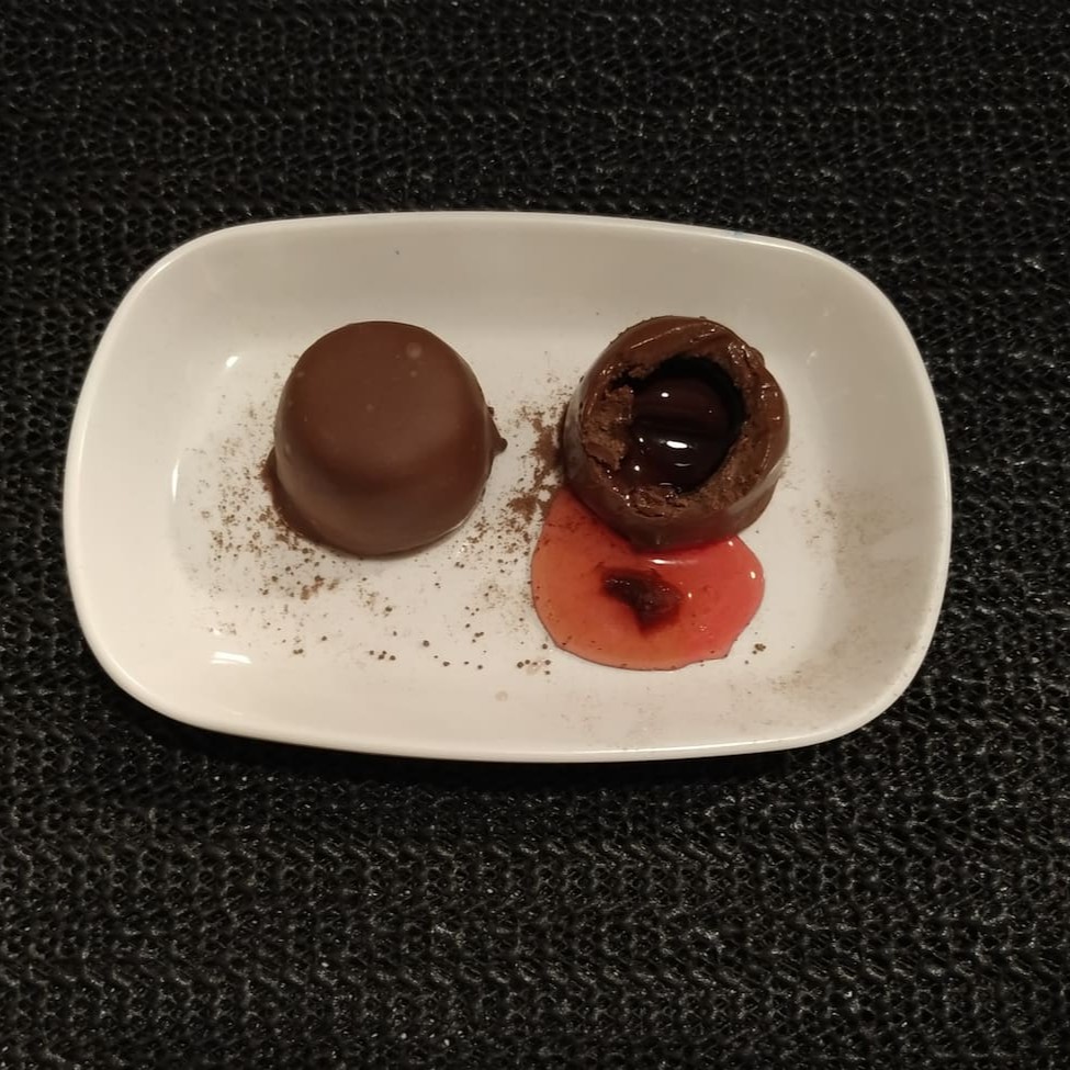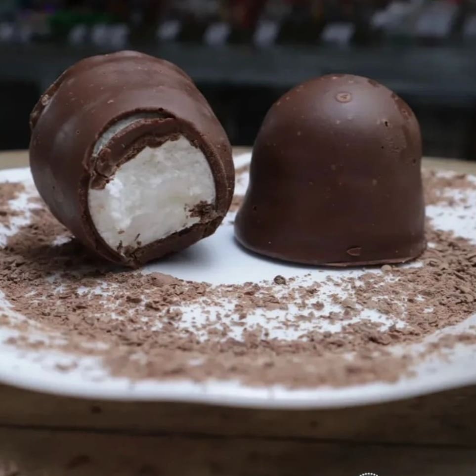 Bombom biju mousse e um enroladinho com mousse de chocolate ao leite. (100g)