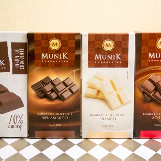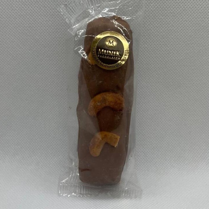 Barra de chocolate com recheio de castanhas de caju. 45g