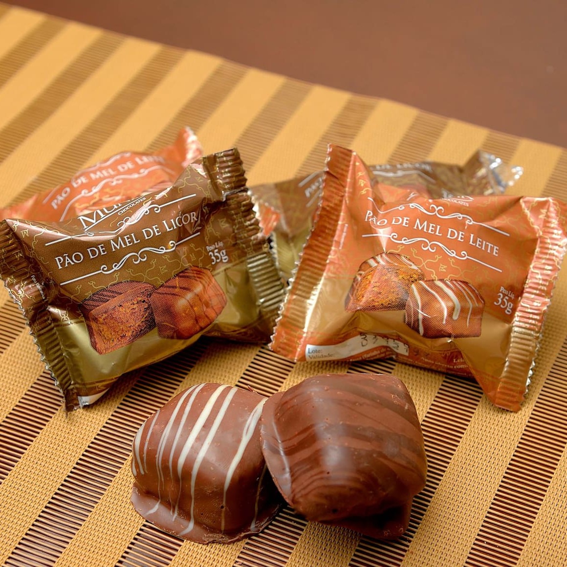 Caixa com 6 pães de mel umedecidos com cacau e mel e 6 pães de mel umedecidos com leite condensado (eleito o melhor pão de mel do mundo!)