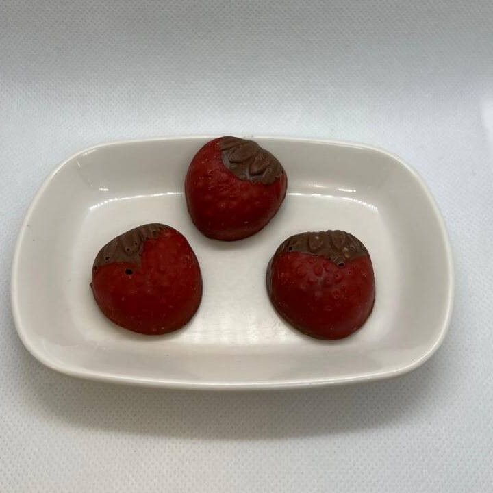 Bombom de chocolate ao leite, com recheio de polpa de morango ao licor, pacote com 100 g.