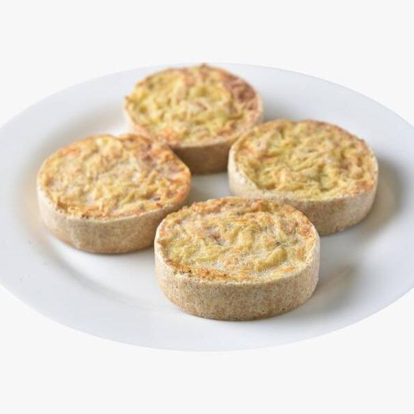 Massa brisée preparada com farinha de trigo, com baixo teor de gordura , recheada com delicioso mix de queijos (prato, parmesão, mussarela e requeijão) complementado com creme de leite, ovos e noz moscada.