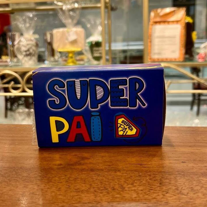 Caixinha azul com tema pai - Super Pai - com 4 trufas soft sortidas.