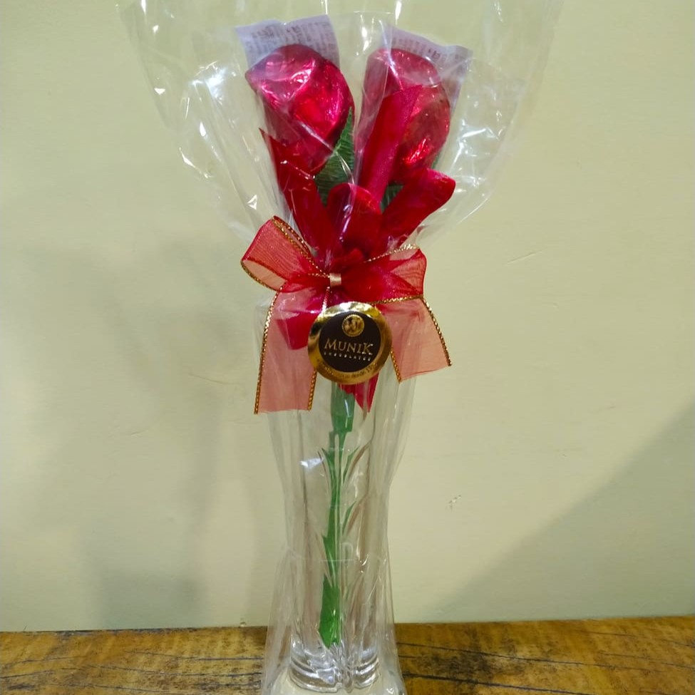 Vaso de vidro com 2 tulipas de chocolate ao leite.