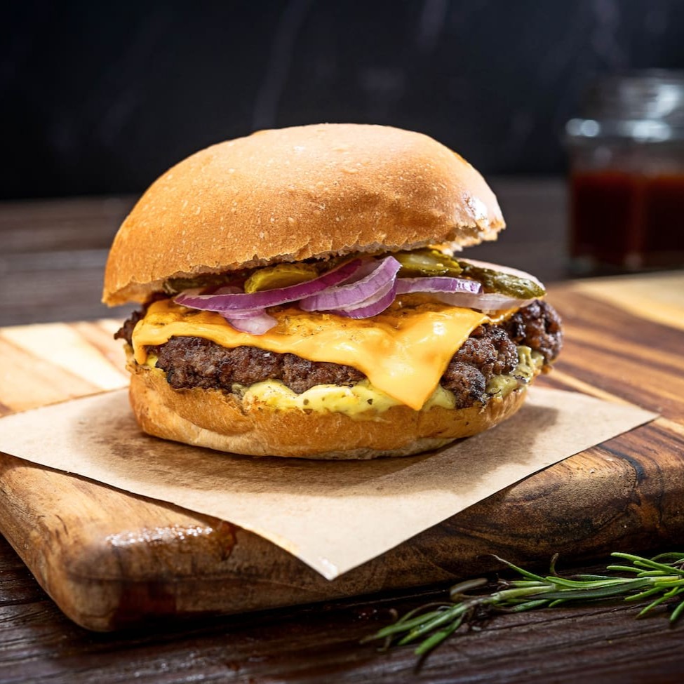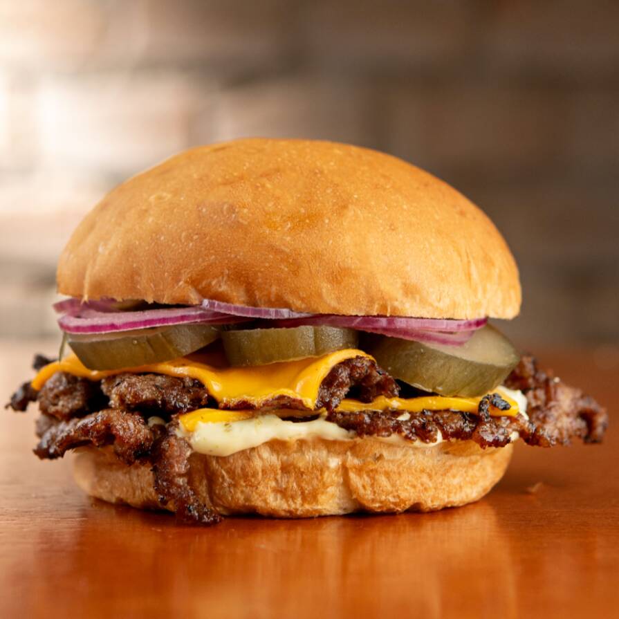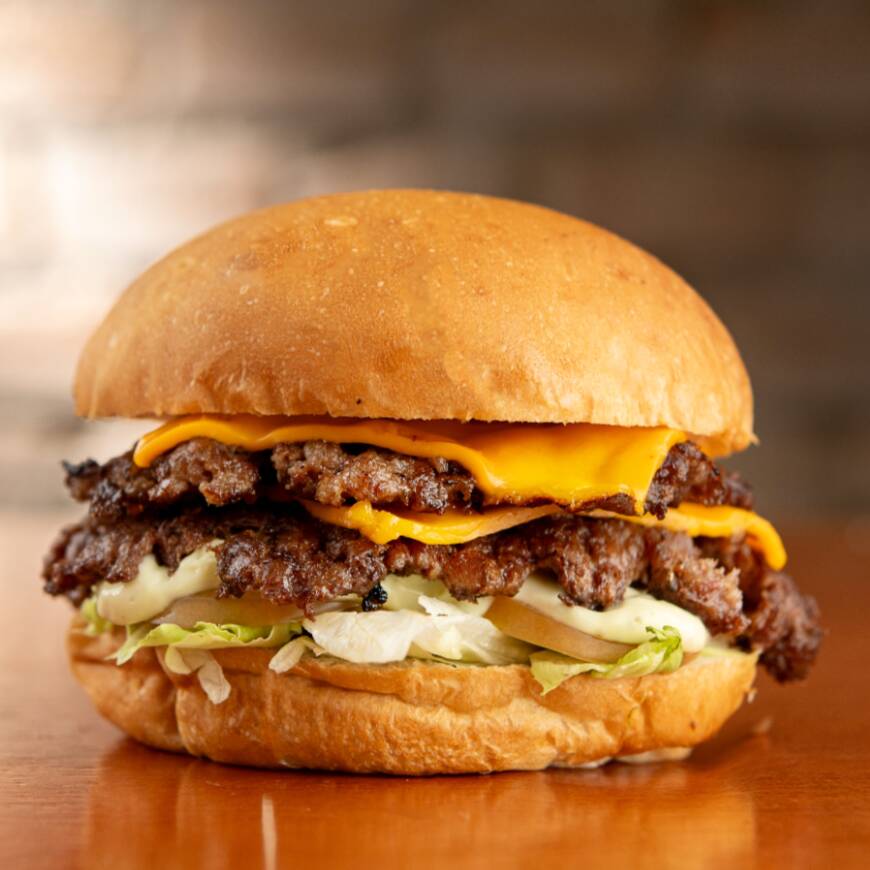 Pão artesanal tostado na gordura do bacon, burger de 70g prensado na chapa, queijo ultra cremoso, picles de pepino, cebola roxa fatiada e maionese da casa. Um smash nostálgico, cheio de personalidade e sabor marcante!