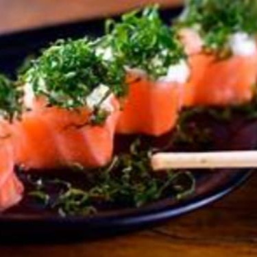Salmão batido ou em cubos com maionese e cebolinha. Atenção! Sem alteração.... Deixe sua avaliaçao no app sobre este pedido, sua 5 estrela vai ajudar bastante;)