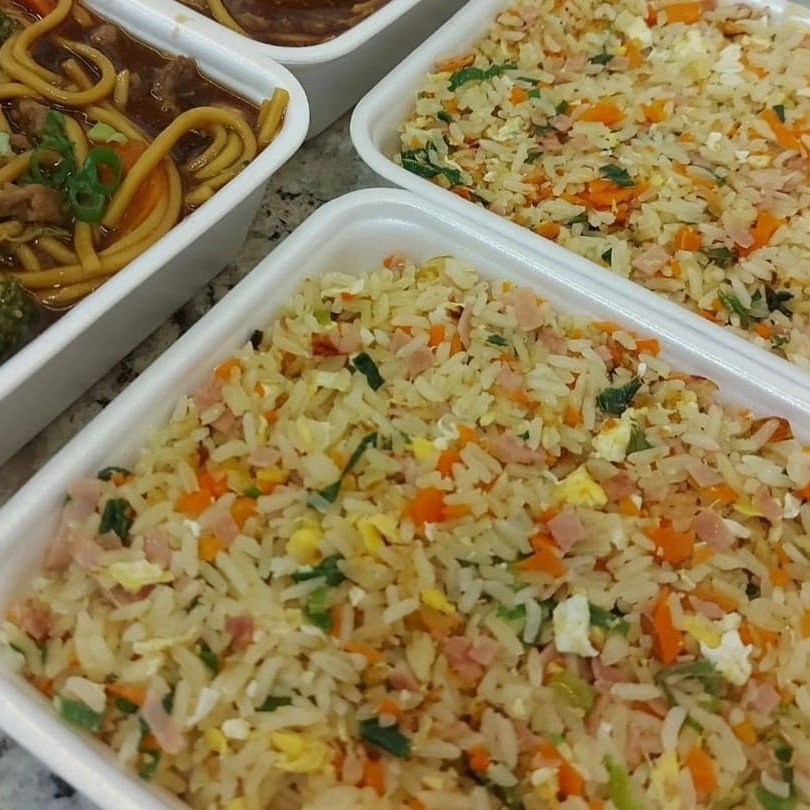 Delicioso yakissoba de frango + arroz yakimeshi. 4 marmitas médias. Serve 4 pessoas.