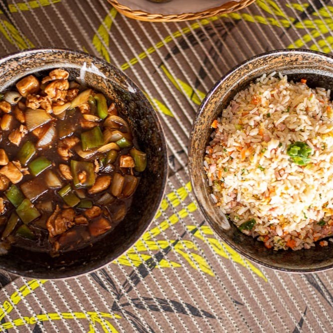 Frango em cubos salteadas na wok com brócolis, ao estilo oriental, envoltas em molho especial da casa. Acompanham yakimeshi, arroz frito na wok com presunto, cenoura, cebolinha e ovo, temperado com um leve toque de shoyu. Uma combinação cheia de sabor e tradição.