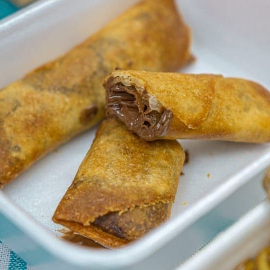Massa frita,fininha e crocante com recheio de chocolate cremoso.