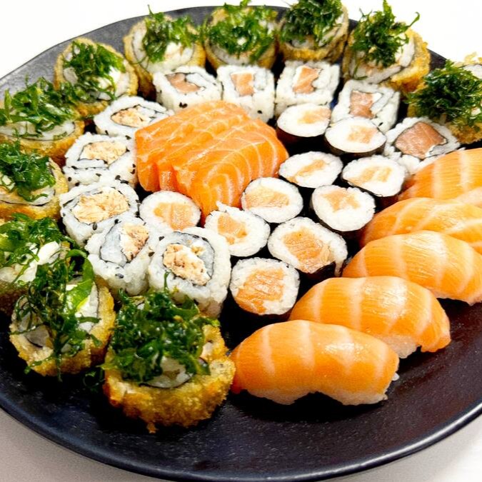 Ah o Combo de Salmão. Pode pedir com tranquilidade que toda peça tem o favorito Salmão, é o queridinho de quem ama sushi..