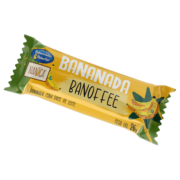 Imagine a textura macia e inconfundível da bananinha tradicional, agora abraçada pelo sabor cremoso do doce de leite e finalizada com o toque sofisticado do cacau em pó. É a famosa torta Banoffee transformada em um snack prático para o seu dia a dia!