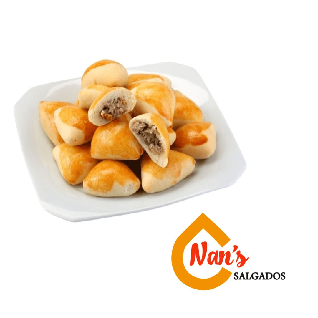 Porção com 10 mini pastéis sabor carne