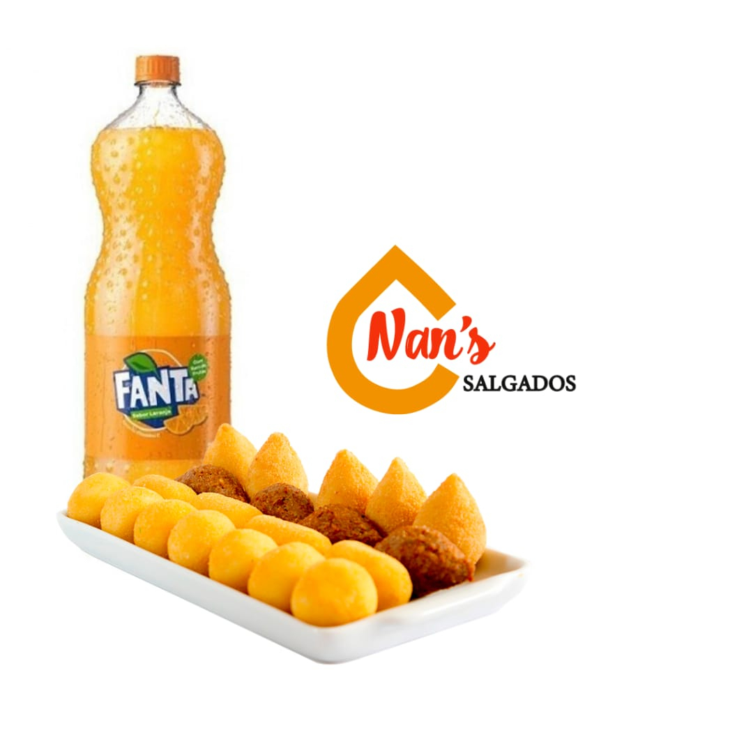 Combo 60 Salgados Sortidos Tamanhos Festa + Fanta Laranja 2 Lts