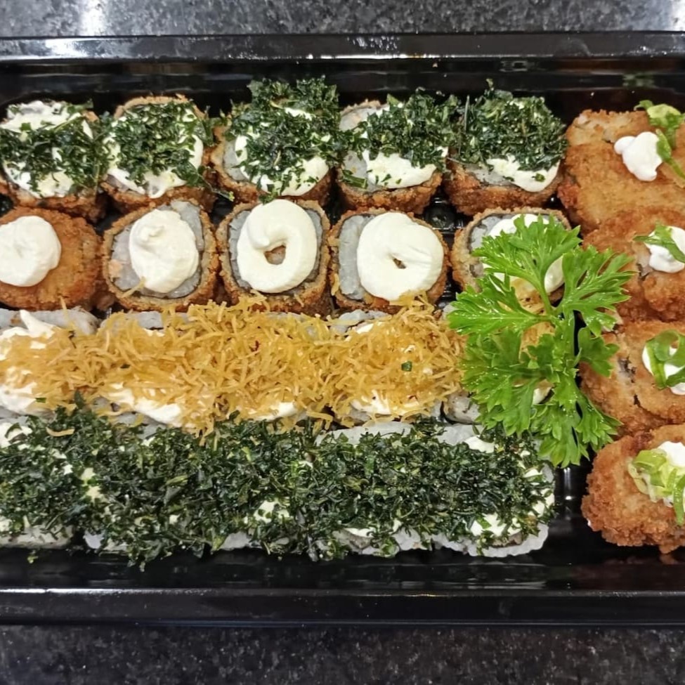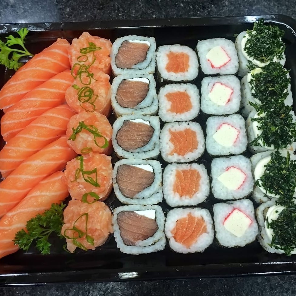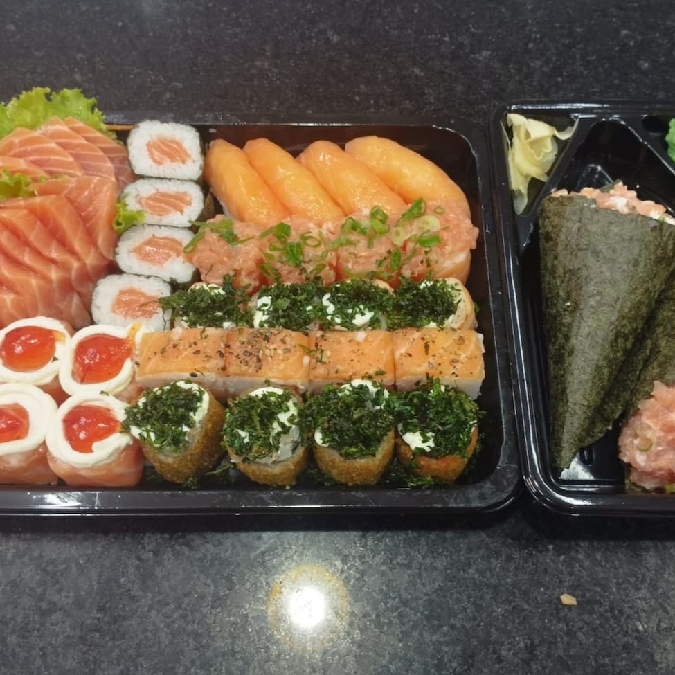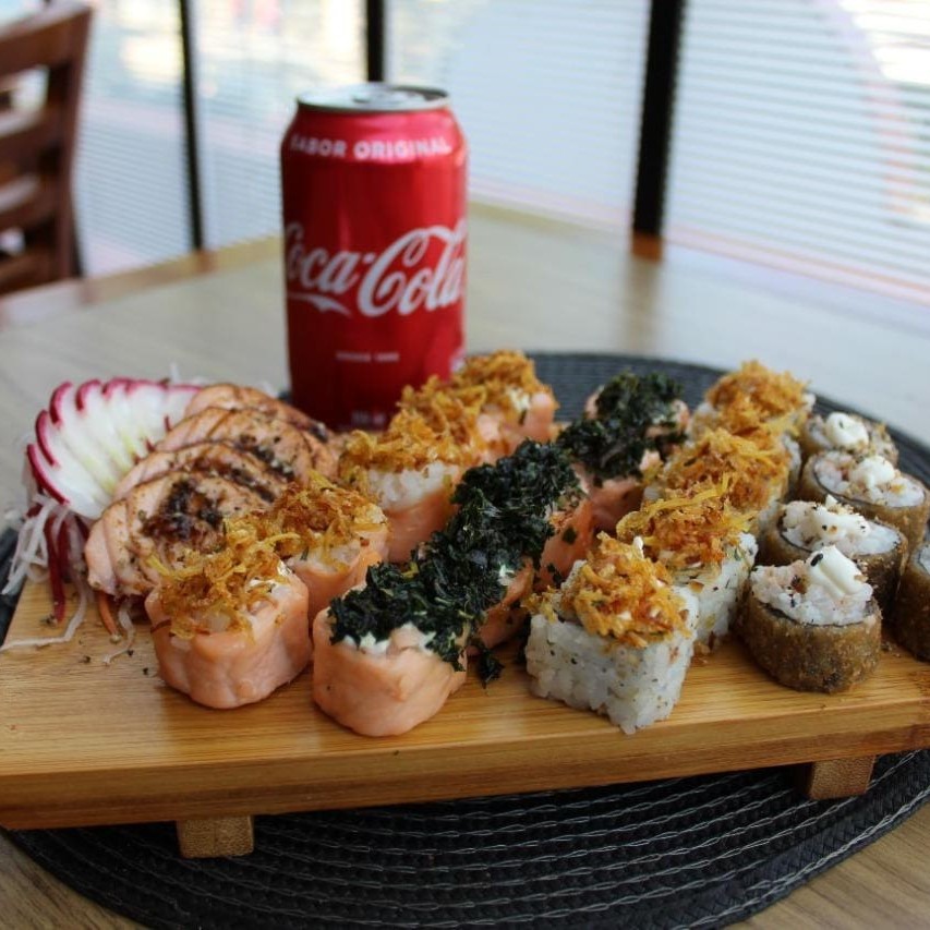 **Combo Sensação Gold - Nada Cru (65 peças)** Um combo exclusivo e irresistível para os amantes da boa comida japonesa: - **35 Uramakis de Salmão Grelhado** com um toque especial do nosso topping exclusivo da casa. - **30 Hot Rolls Variados**, todos finalizados com nosso topping exclusivo, que dá aquele sabor único e marcante. **Bônus:** Ganhe **uma Coca-Cola lata grátis** para acompanhar! Atendemos de terça a sábado, das 11h às 16h. Peça agora e receba em casa com toda a praticidade! **Perfeito para um momento especial ou para matar aquela vontade de um combo premium.** #Nadacru #Saborexclusivo #Cocagrátis