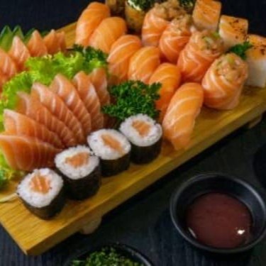 5 sashimis de salmão, 4 uramakis salmão, 2 jou salmão e 2 niguiris salmão. Acompanha shoyo, tarê e hashi. Obs: Alterações dos itens não são permitidas.