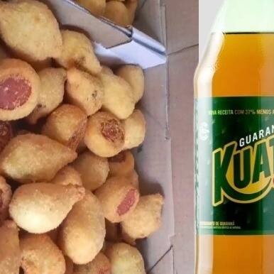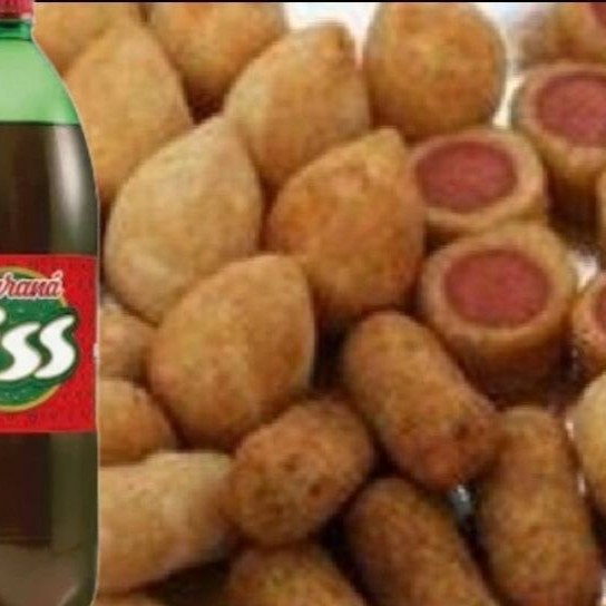 40 Mini salgadinhos sortidos sabores aleatórios coxinha,risoles presunto queijo e calabreza,bolinha de queijo, croquete bolinha de queijo kibe enroladinho de salsicha, kibe +1 Bebida aleatória ou kuat Guaraná 2L ,ou Tiss Guaraná2L, Tiss Tubaina 2L.