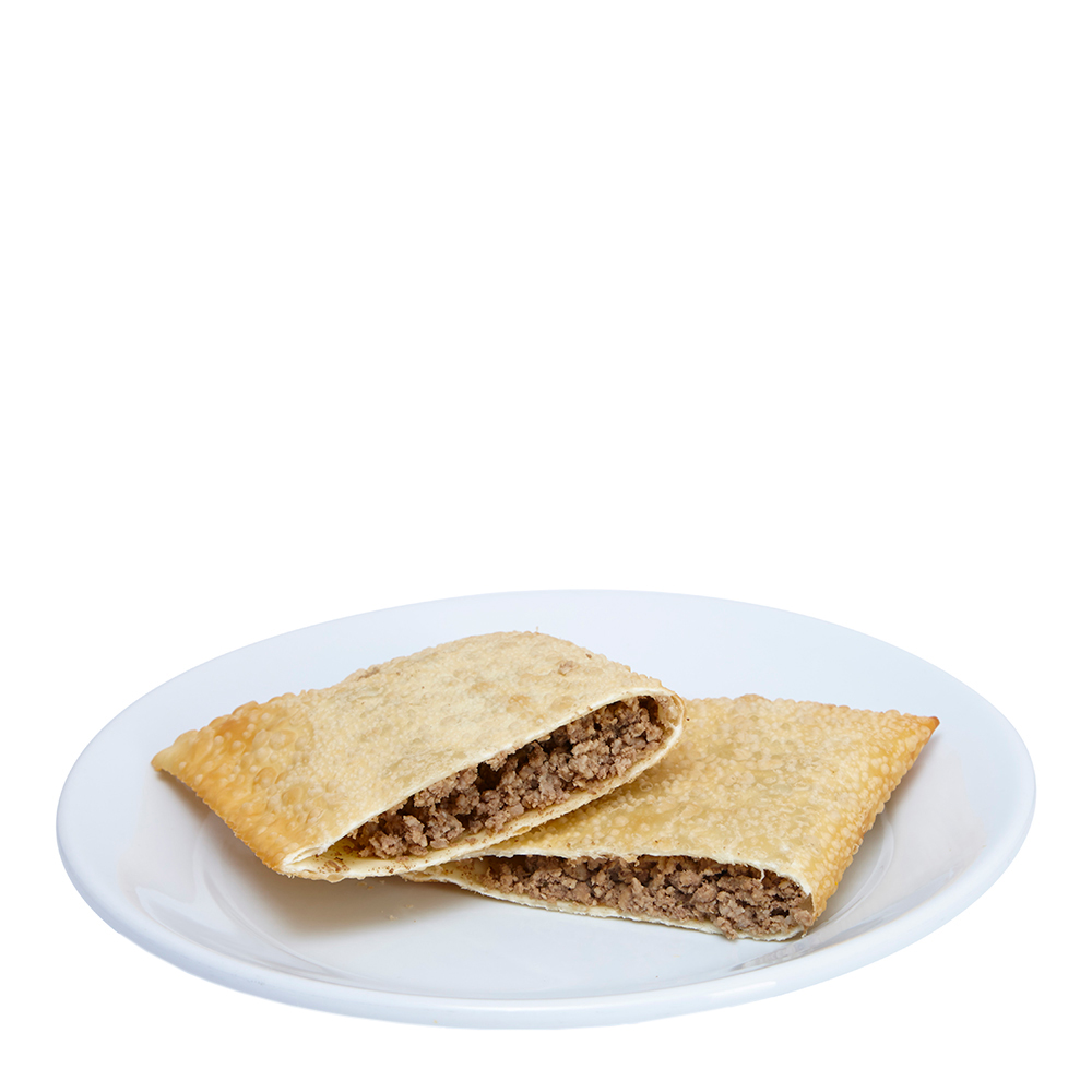 Aproximadamente 70g - Ingredientes: Farinha de trigo enriquecida com ferro e ácido fólico, água filtrada, margarina, gema de ovo, óleo de soja e sal refinado. Queijo ricota, queijo minas, queijo parmesão, ovos, margarina e leite em pó.