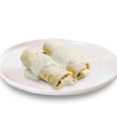 Aproximadamente 350g - Massa para panqueca (leite integral, farinha de trigo, ovo e sal), recheio de frango (peito de frango, amido, azeitona preta, cebola, creme culinário, leite, óleo, colorau, salsa e sal), molho branco (leite, creme culinário, farinha de trigo, cebola, manteiga, sal e noz moscada), molho de tomate e manjericão (tomate italiano, extrato de tomate, cebola, amido, açúcar, sal e m
