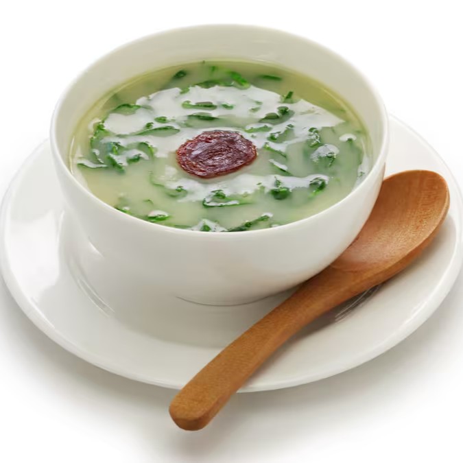 Batata, Linguiça Calabresa, Couve Mineira, Cebolinha, Sal, Óleo de Soja e Cebola. Não Contém Glutén. Alérgicos: Pode conter traços de trigo e leite.