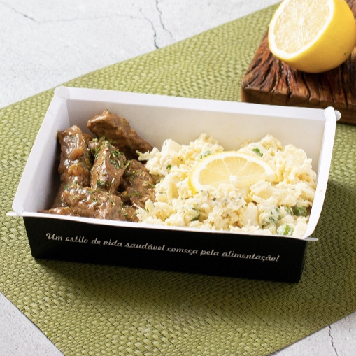 Descubra a sofisticação do nosso Strogonoff de Mignon, uma combinação perfeita de sabores requintados. A carne macia e suculenta se une harmoniosamente ao arroz de pupunha, trazendo uma textura singular ao prato. Para completar, temos brócolis e cenoura picado misturado ao arroz, ambos realçados pelo sabor inigualável de nossas ervas naturais. Uma refeição Low Carb, perfeitamente equilibrada, oferecendo 37g de proteínas, apenas 8,9g de carboidratos e um total de 324kcal. Uma verdadeira delícia, que consegue ser leve e saborosa ao mesmo tempo, ideal para quem busca uma alimentação saudável sem abrir mão do prazer de uma boa refeição.