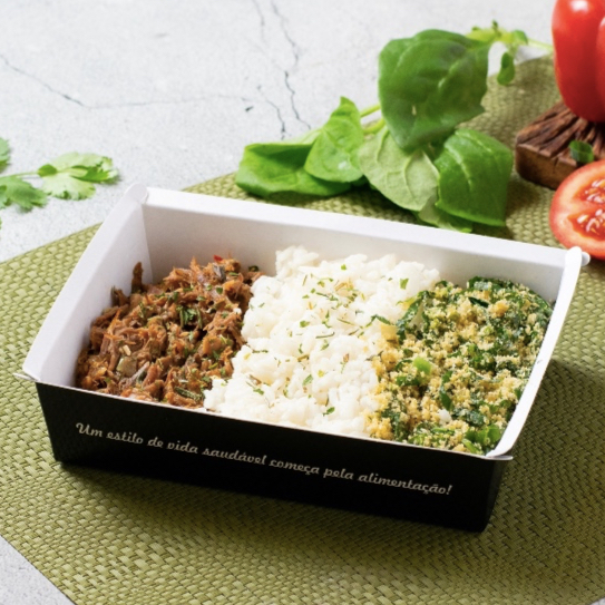 Deleite-se com o sabor caseiro do nosso suculento patinho meticulosamente desfiado, servido acompanhado de um arroz branco leve e soltinho. A farofa adiciona uma textura irresistível ao prato, enquanto a couve manteiga refogada traz frescor e equilíbrio. Esta é uma refeição fitness nutritiva e balanceada, cuidadosamente temperada com nossas ervas naturais selecionadas. Com uma composição de 43g de proteína, 26g de lipídios e 34g de carboidratos, é o prato perfeito para sua dieta, totalizando 455 kcal. Ideal para quem busca uma alimentação saudável sem abrir mão do sabor autêntico da culinária caseira.