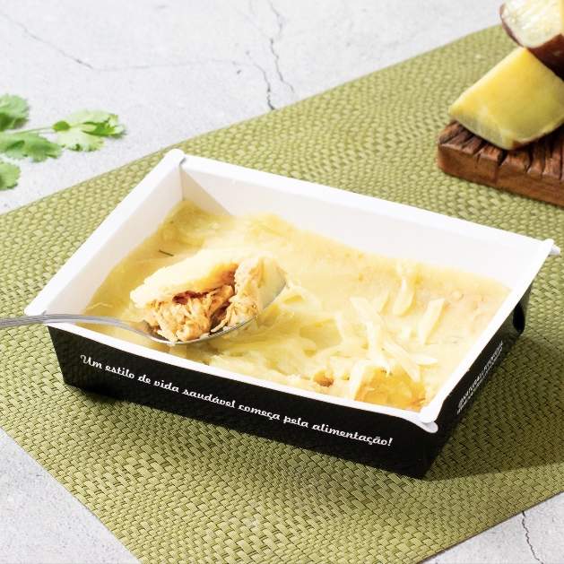 Desfrute do nosso 'Escondidinho de Mandioquinha com Frango', uma sofisticada opção da categoria 'Refeições Fitness'. Este prato é uma fusão deliciosa de mandioquinha cuidadosamente amassada até atingir uma textura cremosa, com frango suculento, cozido à perfeição. Uma combinação harmoniosa de texturas e sabores, ainda mais valorizada pelo toque especial das nossas ervas naturais selecionadas. Oferece um total de 30g de carboidratos, 29g de proteína e um valor energético de 339kcal. Totalmente equilibrado e nutritivo, é a escolha perfeita para quem busca uma refeição saborosa sem abrir mão do bem-estar.