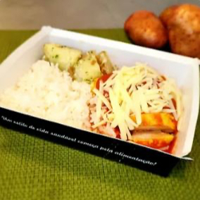 Delicie-se com a nossa sofisticada Parmegiana de Frango, magnificamente gratinada, servida ao lado de um arroz branco leve e soltinho e batatas asterix perfeitamente douradas. Este prato fitness, é uma refeição reconfortante e deliciosa, cuidadosamente temperada com as nossas ervas naturais selecionadas. Com uma combinação perfeita de 47g de proteínas, 11g de lipídios e 40g de carboidratos, ele totaliza 465kcal. Uma opção saborosa que não compromete sua dieta, mas garante um prazer incomparável a cada garfada.