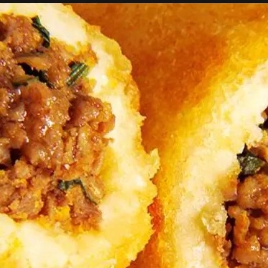Delicioso kibe frito recheado com carne moída temperada, perfeito para o lanche.