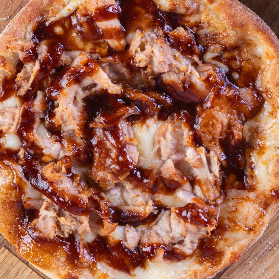 Pizza composta por: Pernil refogado e desfiado, cebola, molho barbecue e Muçarela. Coma sem sair de casa, como se estivesse no estádio!