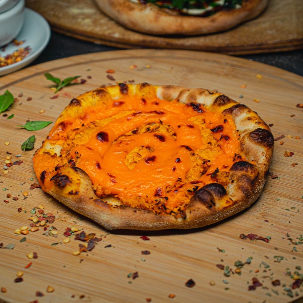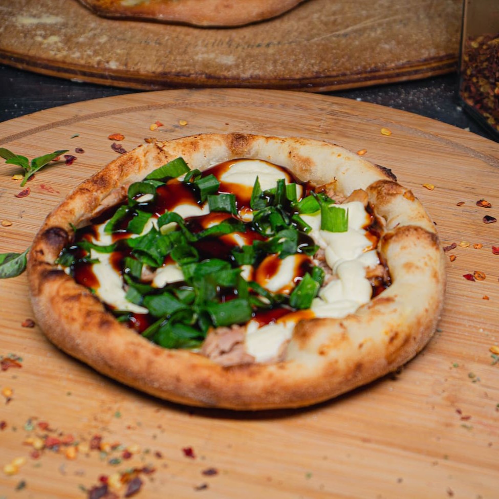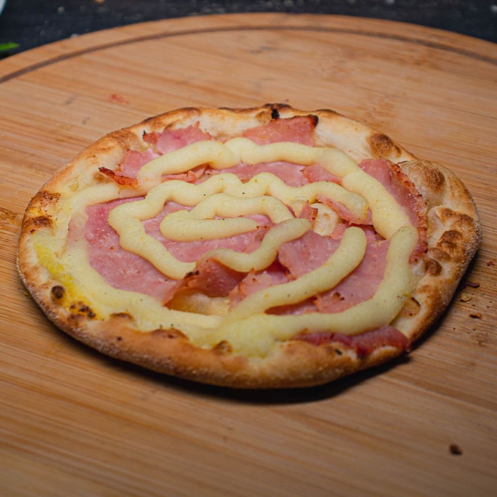 Pizza composta por: Frango, cream cheese, molho barbecue e bacon. Uma deliciosa sensação de sabores!