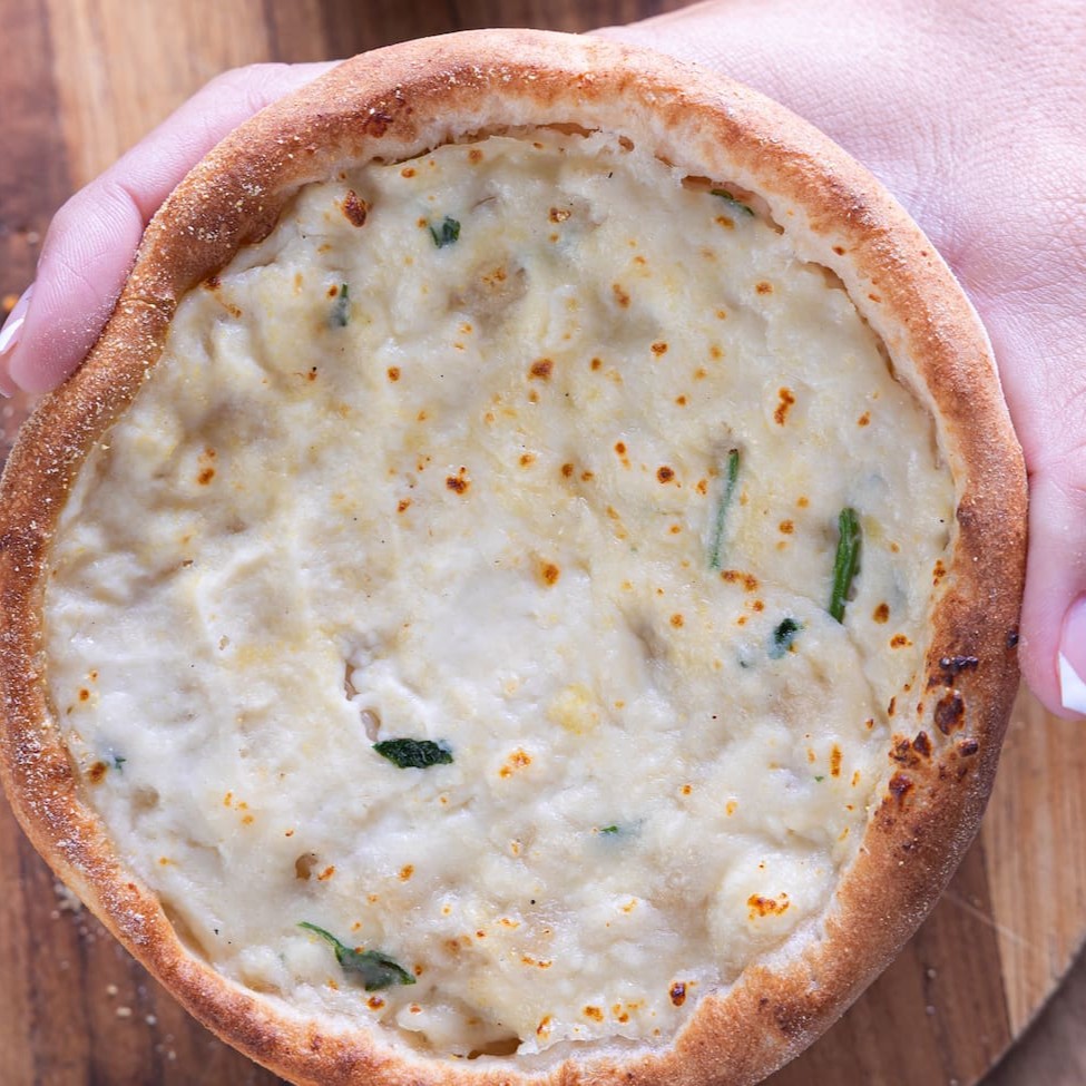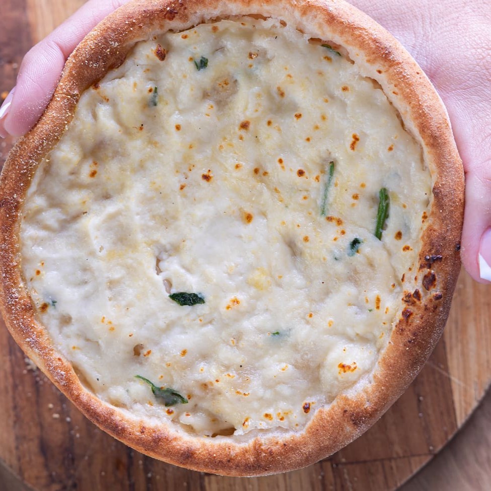 Deliciosa Esfiha de Queijo Minas, temperada com salsa e queijo fresco ao estilo árabe!